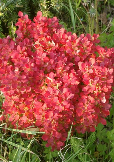 Новый сорт лиственного карликового кустарника, высотой и шириной до 50 см. Форма кроны естественно-круглая. Побеги оранжево-красные. Листья мелкие,круглые, оранжево-красные. К почвам не требователен, засухоустойчив. Не требует формировки. Используется в контрастных композициях, на альпийских горках.